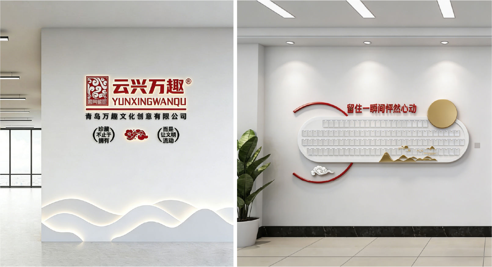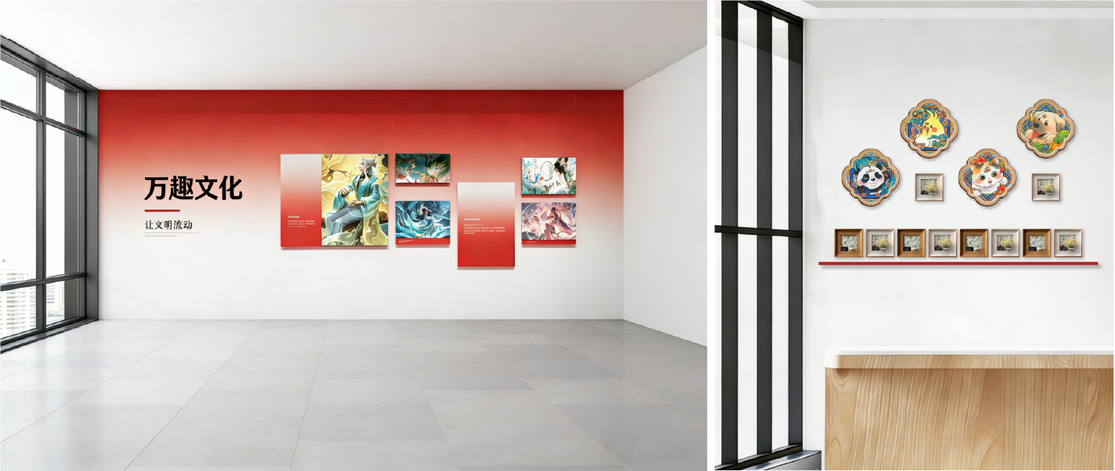 利用墙面空间,设置展板或展示墙,展示企业的文化、历史、荣誉等内容。展板可以采用可拆卸、可更换的设计,方便随时更新展示内容。
